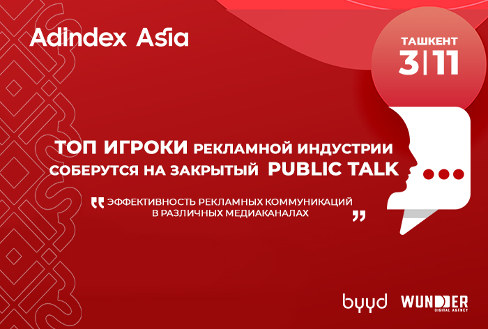 В ноябре международная редакция AdIndex Asia проведет закрытое мероприятие в формате Public Talk. На встрече будут присутствовать ведущие игроки рынков России, Беларуси, Казахстана и Узбекистана. Зарубежные эксперты – аналитики, маркетологи, руководители агентств – обменяются профессиональным опытом с лидерами узбекского рынка.