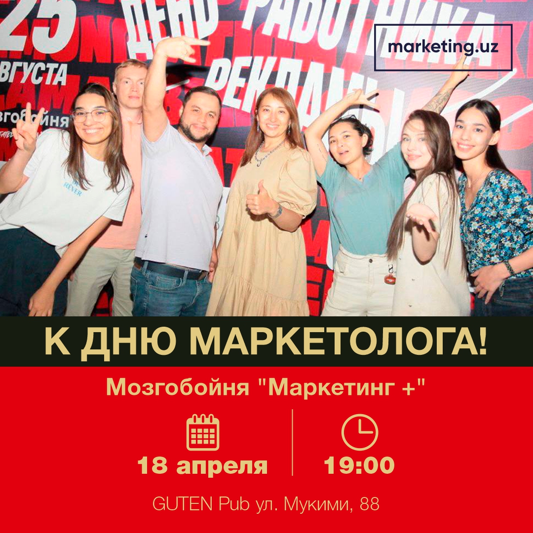Маркетинговая ассоциация Узбекистана предлагает отметить праздник вместе и приглашает вас на тематическую квиз-игру Мозгобойню, посвященную маркетингу и рекламе