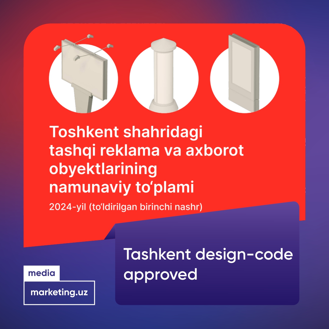 The Department of Digital Development of the Tashkent city khokimiyat developed a design code for outdoor advertising and information objects in Tashkent, which was approved on October 25 by a resolution of the Kengash of People's Deputies of the city of Tashkent.