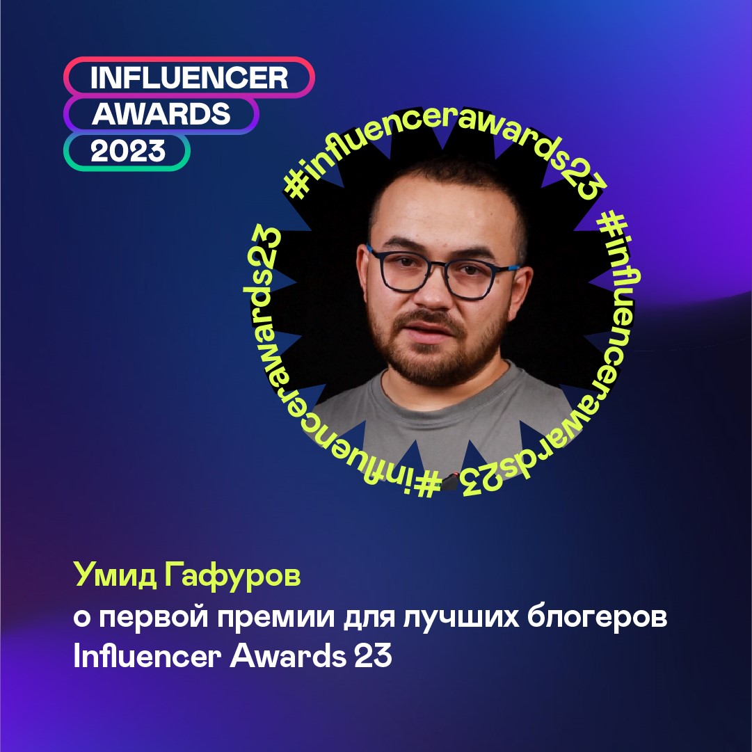 Умид Гафуров, автор Troll.uz и сооснователь креативного агентства Tanish-Bilish: "Поэтому мы вместе с Маркетинговой ассоциацией Узбекистана объявляем премию Influencer Awards 2023 для определения авторов самого качественного контента в Узбекистане за 2023 год по 25 номинациям."