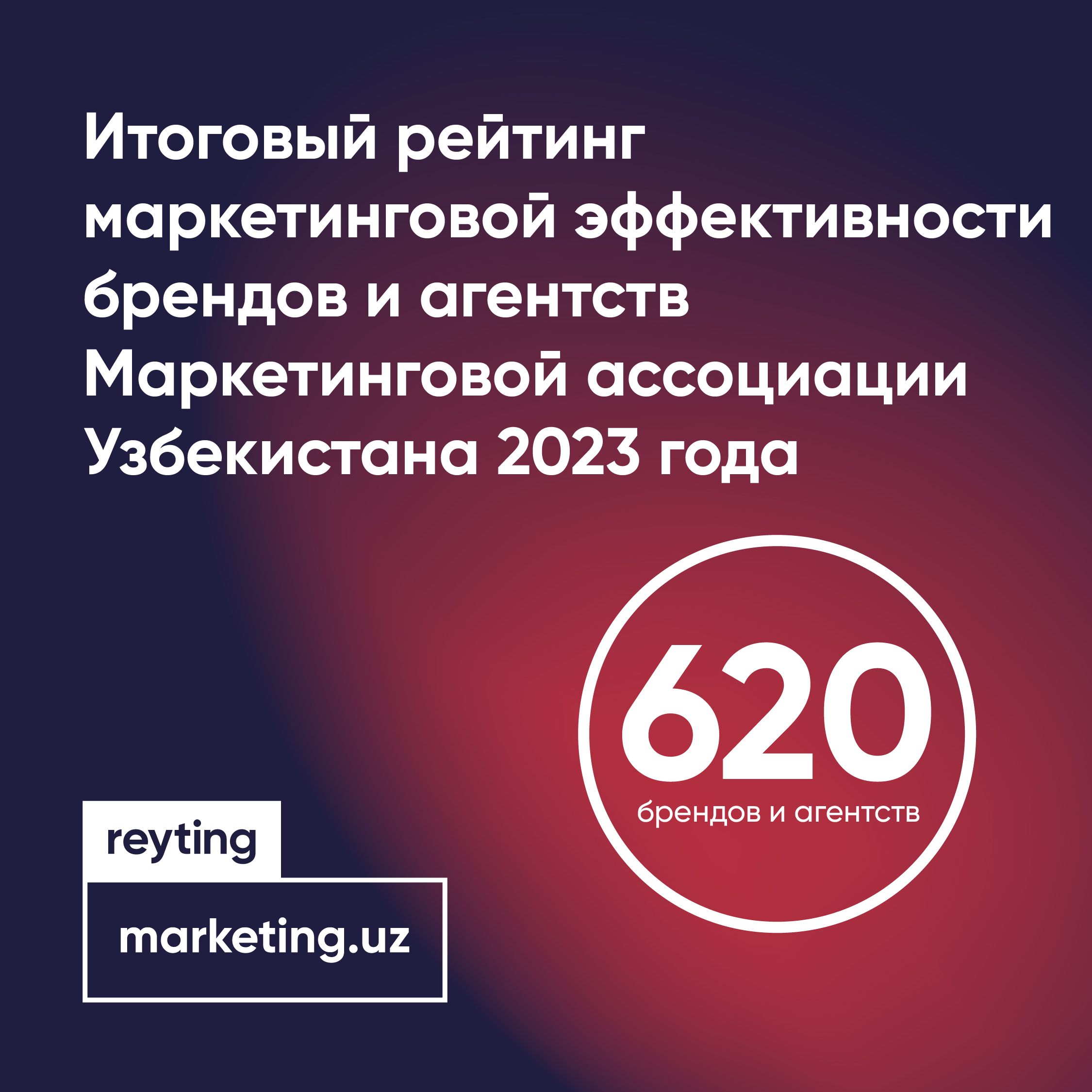 Маркетинговая Ассоциация Узбекистана традиционно, в конце года, объявляет Рейтинг маркетинговой эффективности брендов и агентств Узбекистана по итогам года. Итоговый Рейтинг 2023 года опубликован на сайте marketing.uz. В Рейтинге брендов 571 участников вместо 496 прошлого года, в Рейтинге агентств 49 участников.