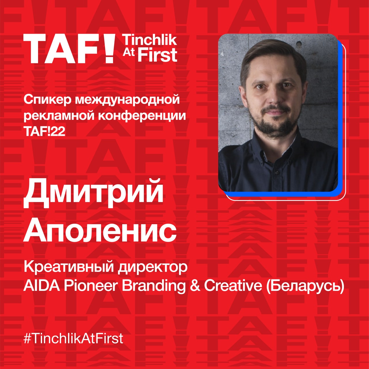 Спикер TAF!22 Дмитрий АПОЛЕНИС, креативный директор, совладелец AIDA Pioneer Branding & Creative (Беларусь)