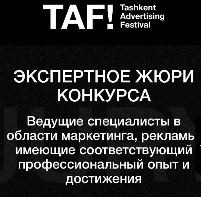 Если хотите познакомиться с наиболее успешными компаниями страны, работающими в условиях жёсткой конкуренции и с теми, кто возглавляет маркетинг в этих компаниях, переходите на страницу конкурса лучшей рекламы Ташкентского фестиваля рекламы TAF!