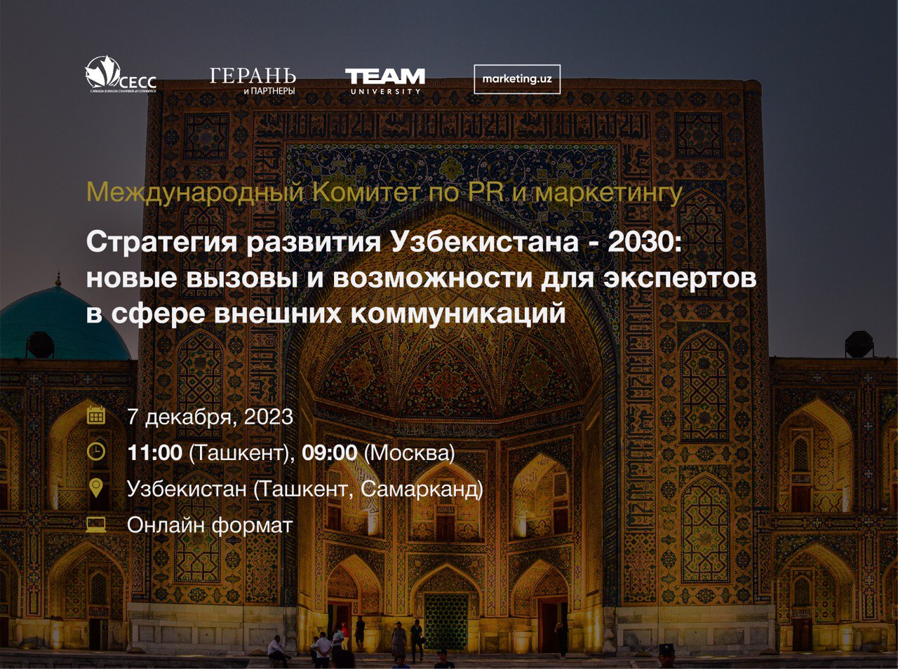 Приглашаем вас принять участие в заседании на тему: "Стратегия развития Узбекистана — 2030: новые вызовы и возможности для экспертов в сфере внешних коммуникаций"