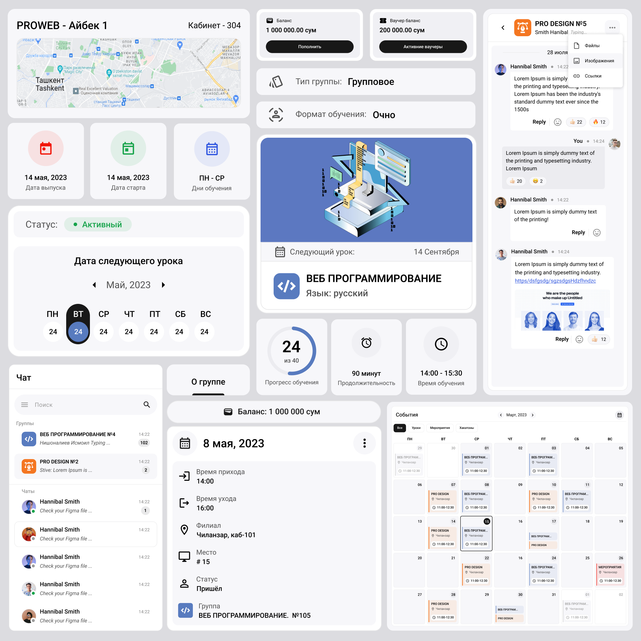 Платформа PROWEB закрывает такие вопросы, как успеваемость и посещаемость студента, удобное хранение и просмотр записей уроков, прохождение тестирований, запись в коворкинг-зону и многое другое.