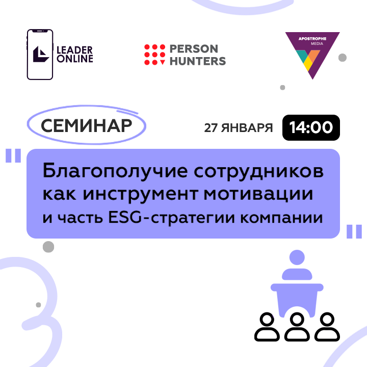 Компания Person Hunters совместно с партнерами: школой Leader, компанией "Апостроф медиа", Ассоциацией работодателей Узбекистана и Маркетинговой ассоциацией Узбекистана проводит семинар «Благополучие сотрудников как инструмент мотивации и часть ESG-стратегии компании»