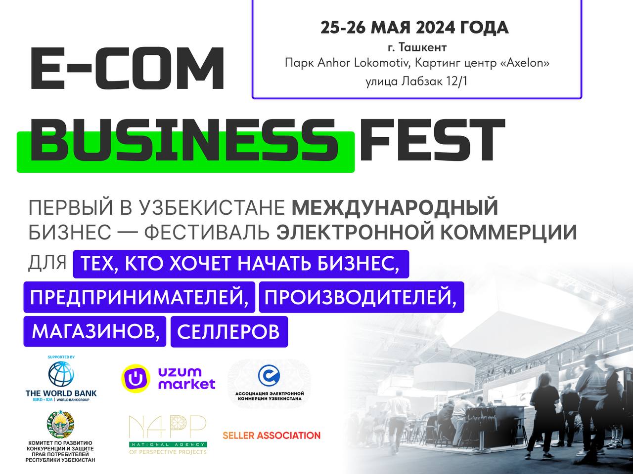 Международный фестиваль электронной коммерции E-COM BUSINESS FEST пройдет в Ташкенте 25-26 мая. Фестиваль станет масштабной площадкой для обмена опытом и знаниями, поиска партнеров и презентации продуктов и услуг для действующих и будущих предпринимателей из Узбекистана и стран Центральной Азии.