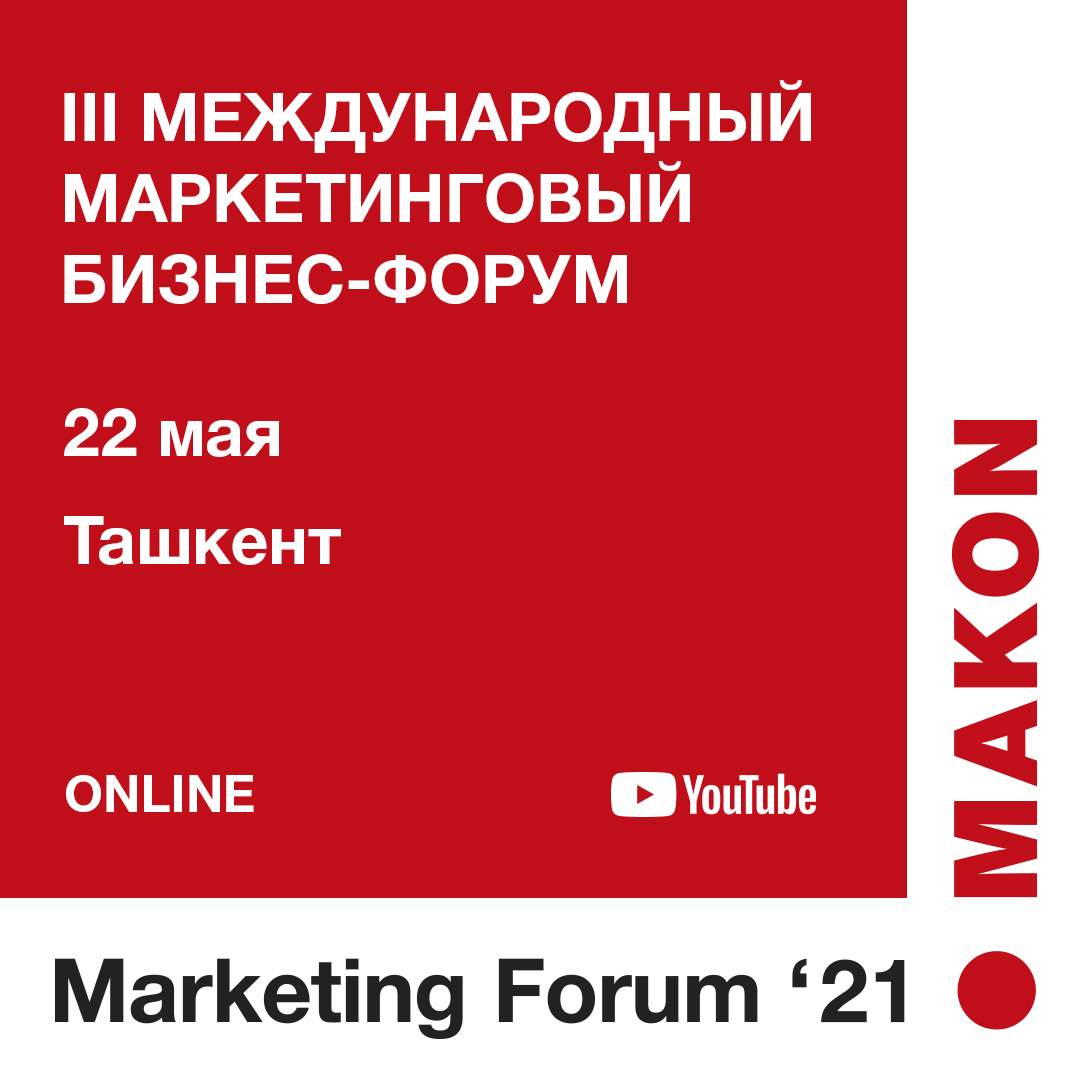 Бизнес-форум MAKON Marketing Forum 2021 пройдет 22 мая в Ташкенте. Участников Форума ждут выступления экспертов из Узбекистана, России, Украины, Грузии. Спикеры поделятся своим личным опытом и дадут ценные советы о том, как развивать свои проекты в непростое для бизнеса время.