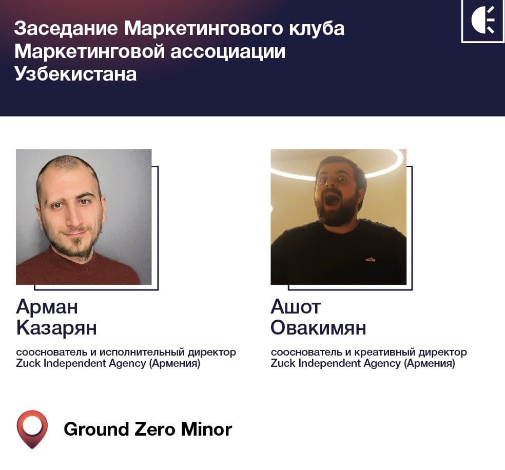 19:00 - 20:30 Встреча с нашими гостями из Еревана, основателями независимого рекламного агентства Zuck Independent Agency, Арманом Kазарян и Ашотом Овакимян.