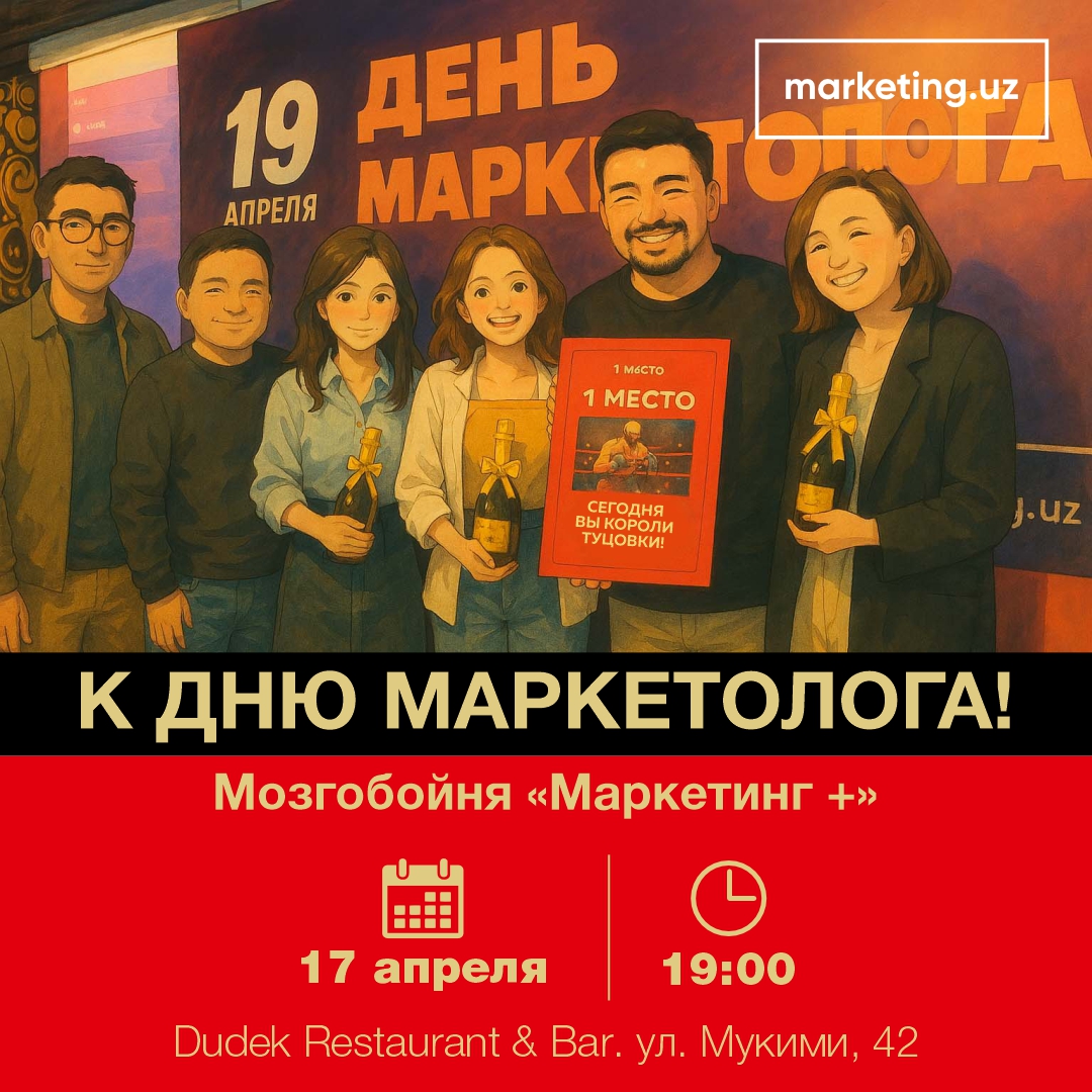 Маркетинговая ассоциация Узбекистана предлагает отметить праздник вместе и приглашает вас на тематическую квиз-игру Мозгобойню, посвященную маркетингу и рекламе.