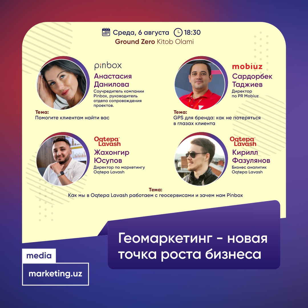 Pinbox и Маркетинговая ассоциации Узбекистана приглашают вас на митап "Геомаркетинг - новая точка роста бизнеса".