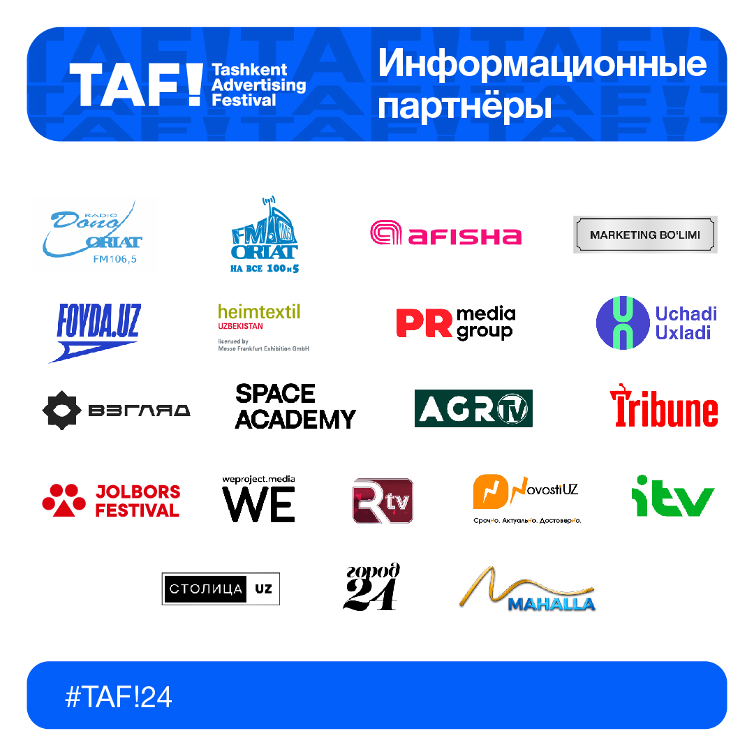 Благодарим информационных партнеров за поддержку шестого Ташкентского фестиваля рекламы TAF!24