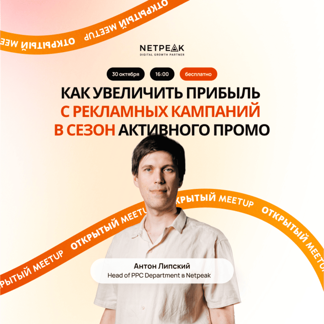 30 октября в 16:00 состоится онлайн-митап Netpeak Kazakhstan — «Как увеличить прибыль с рекламных кампаний в сезон активного промо: от Чёрной пятницы до Нового года». На митапе участники смогут оценить готовность своих рекламных кампаний к пику сезона.