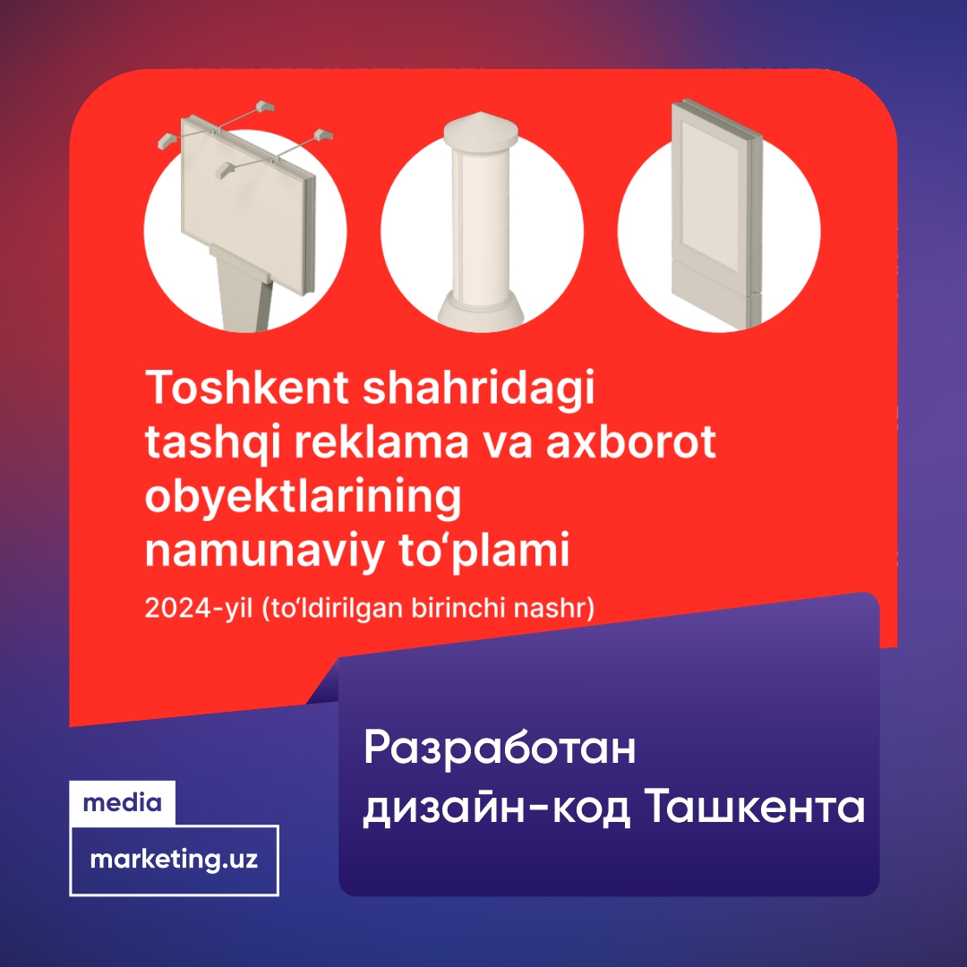 Департамент цифрового развития хокимията города Ташкента разработал дизайн-код наружной рекламы и информационных объектов Ташкента, который 25 октября был утвержден постановлением Кенгаша народных депутатов города Ташкента.