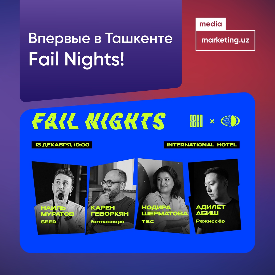 Впервые в Ташкенте — Fail Nights! - новый ивент от агенства seedalmaty и платформы creativity.days, где креативщики, маркетологи, предприниматели, топ-менеджеры и другие успешные люди делятся своими фейлами.