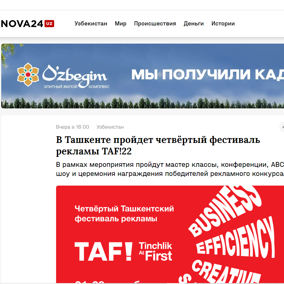 В Ташкенте пройдет четвёртый фестиваль рекламы TAF!22