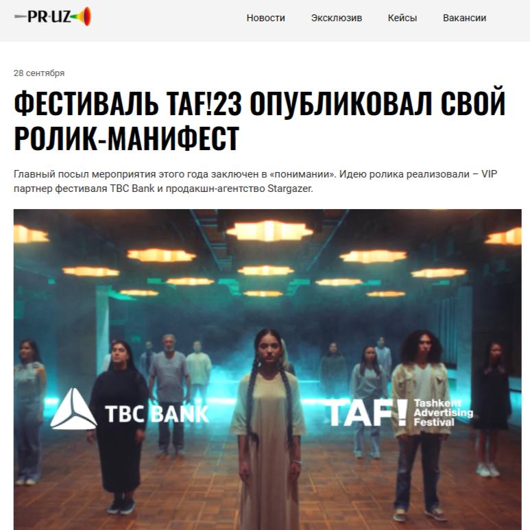 PR.UZ — Фестиваль TAF!23 опубликовал свой ролик-манифест