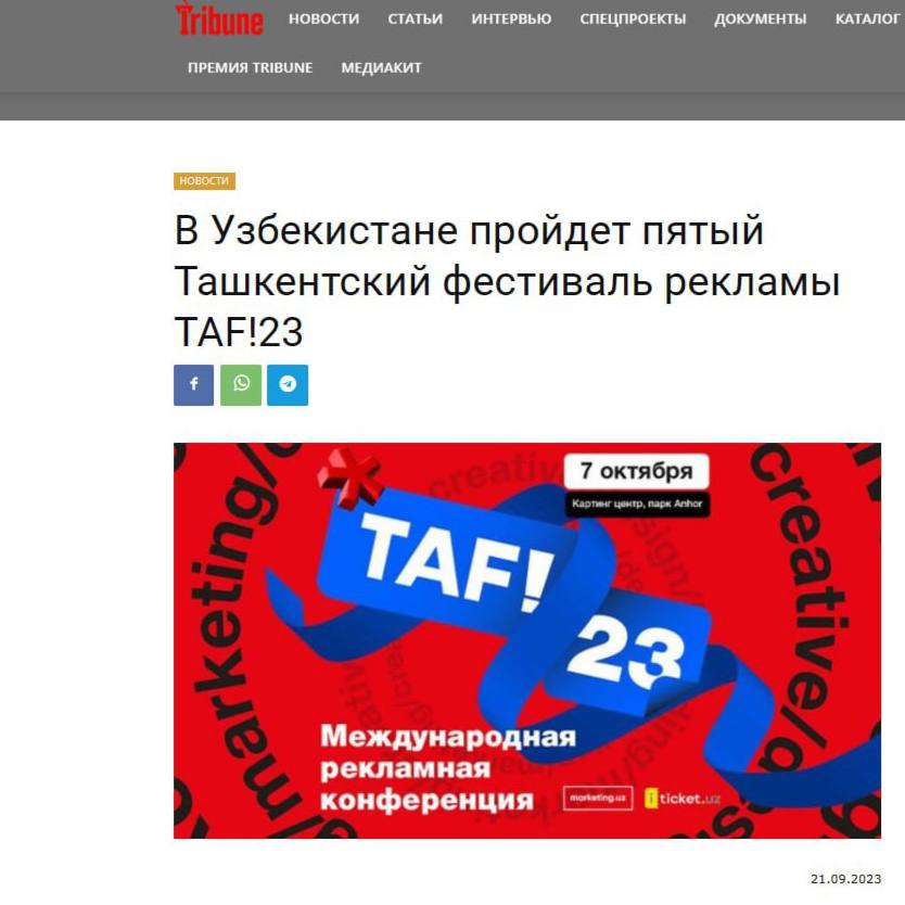 Tribune.kz — В Узбекистане пройдет пятый Ташкентский фестиваль рекламы TAF!23
