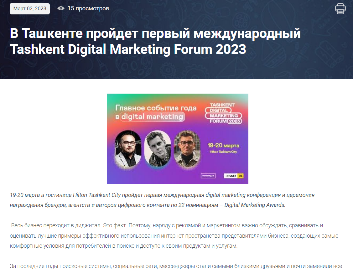 Подробнее https://pc.uz/news/152321-v-tashkente-projdet-pervyj-mezhdunarodnyj-tashkent-digital-marketing-forum-2023