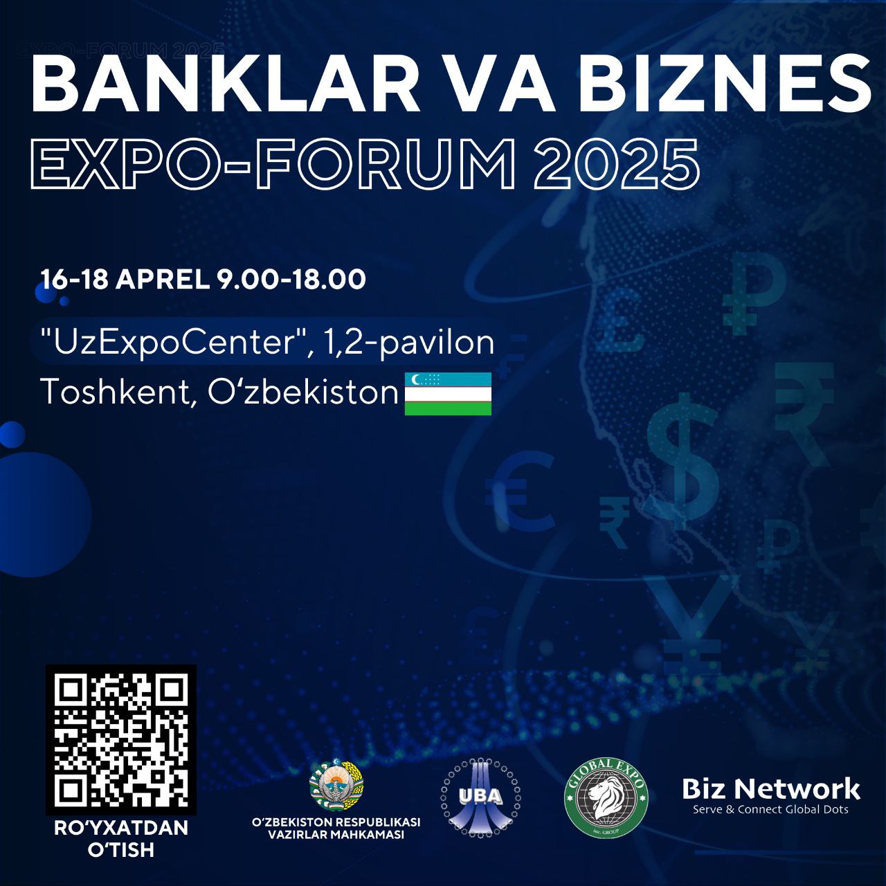 Biz Network va Global Expo sizni Markaziy Yevroosiyodagi eng yirik bank forumi bo'lgan "Banks & Business Expo/Forum 2025" Xalqaro bank forumi va ko'rgazmasiga taklif qilish sharafiga ega!