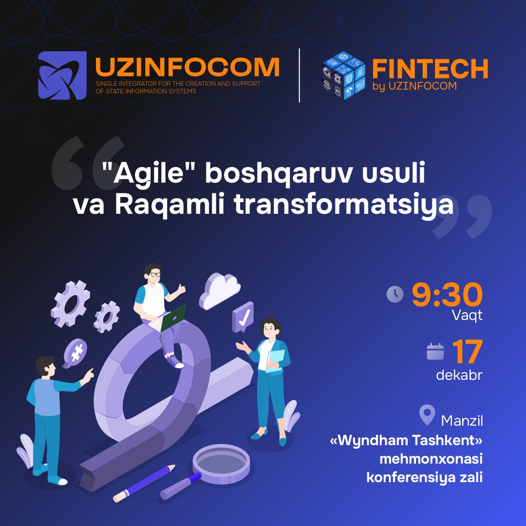 Joriy yilning 17-dekabr kuni «Wyndham Tashkent» mehmonxonasining konferensiya zalida UZINFOCOM MDH mamlakatlari va respublikaning yetakchi tashkilotlari ekspertlari ishtirokida “Agile boshqaruvining moslashuvchan usullari va raqamli transformatsiya” mavzusida keng ko‘lamli konferensiya o‘tkazadi.