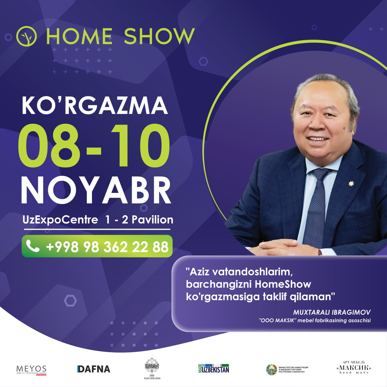 “HOMESHOW” - SHOW formatidagi ilk koʻrgazma boʻlib, unda mahalliy va xorijiy mebel/dekor ishlab chiqaruvchilari, shuningdek, dizaynerlar uy, ofis, kafe/restoran va mehmonxonalar uchun tayyor yechimlarni isteʼmolchilarga taqdim etadi.