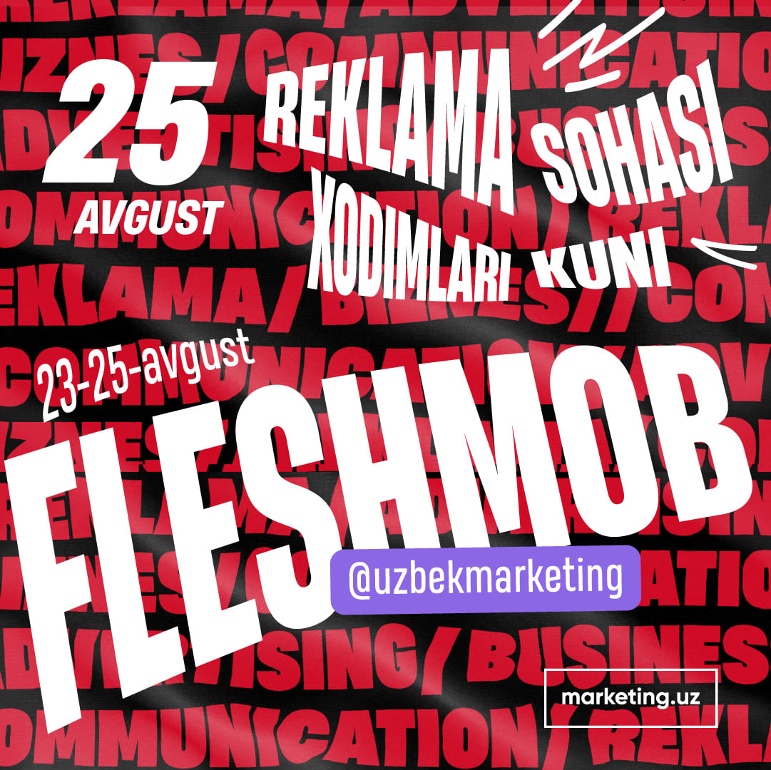 Reklamani yaratish va tarqatish bilan shug‘ullanadiganlarga 23-25 avgust kunlari bayram fleshmobida ishtirok etishni taklif qilamiz⠀