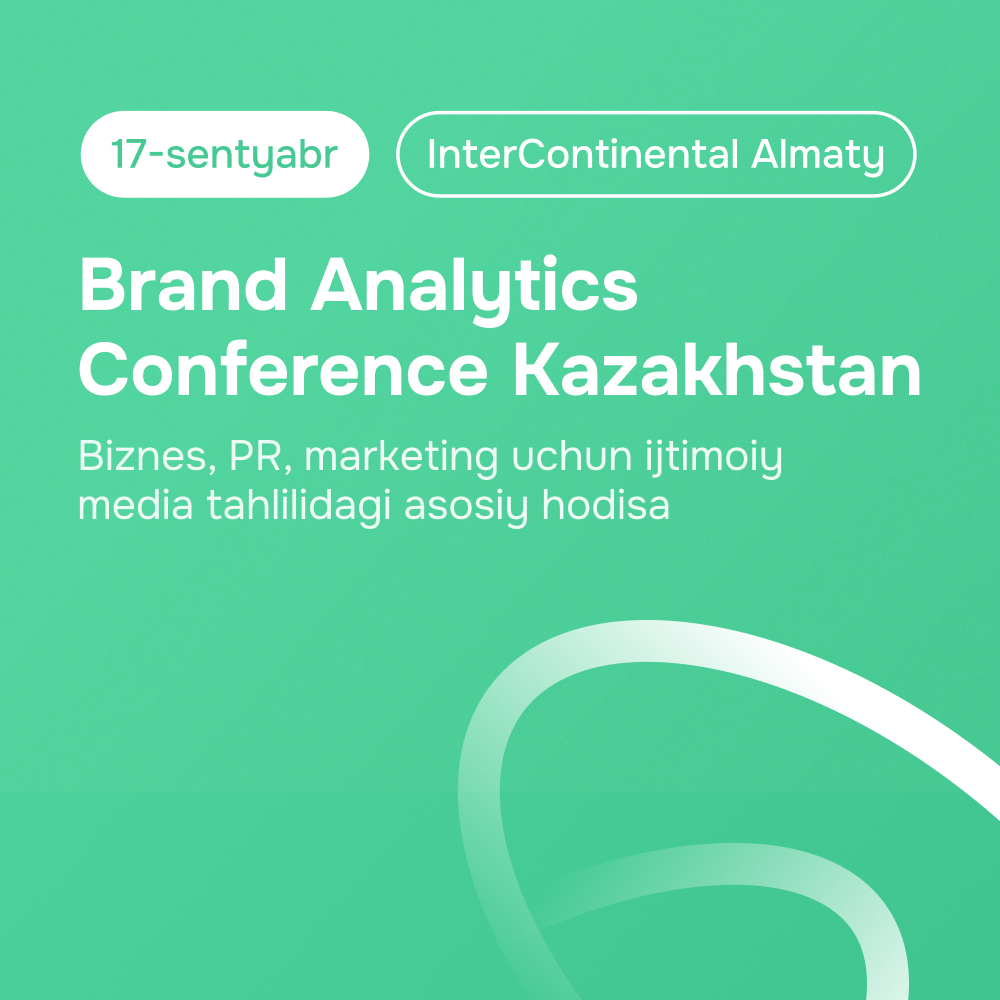 17-sentabr kuni Almatidagi InterContinental mehmonxonasida ijtimoiy media tahliliga bag‘ishlangan Markaziy Osiyodagi eng yirik tadbir – Brand Analytics Conference Kazakhstan bo‘lib o‘tadi.