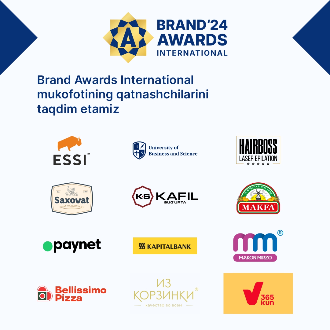 «Brand Awards International 2024» xalqaro mukofotining qatnashchilarini taqdim etamiz