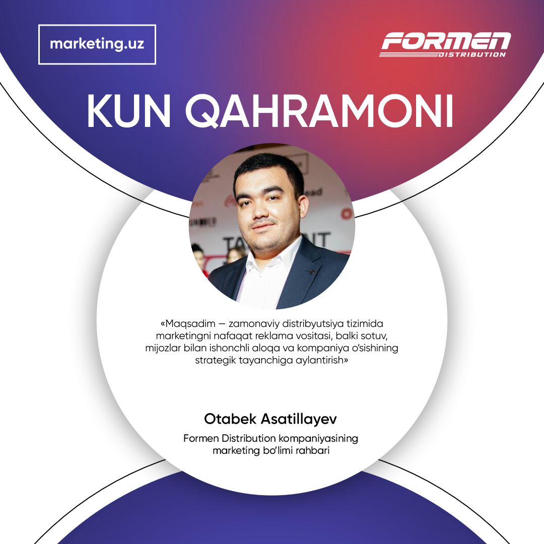 Asatillayev Otabek Xayrullayevich — Formen Distribution kompaniyasining marketing bo‘limi rahbari, sotuv va undirish tizimlarini yagona boshqaruv ostida shakllantirgan strateg va lider.